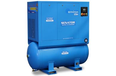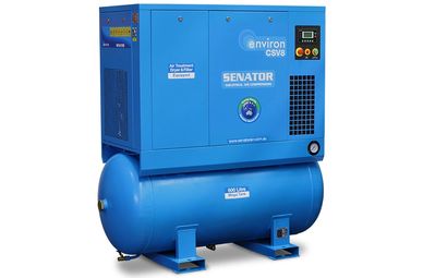 The all-new Senator TS series comprises the five most popular sizes of fixed-speed rotary screw air compressor sets mounted on oversized air tanks. These compact, ready to run packages save you installation cost and floorspace compared to using traditional standalone components.