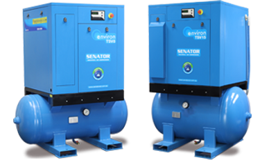 Combining proven energy-efficient variable speed drive technology with an oversized air tank in a compact space-saving layout. The all-new Senator TSV rotary screw air compressor sets are ideally configured for small-to-medium industrial applications that have fluctuating compressed air demands.